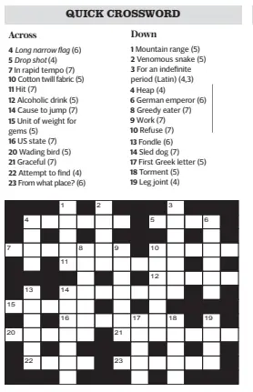 At Quick Tempo Musical Crossword Clue, Puzzle and Solver - Crossword Leak Our system collect crossword clues from most populer crossword, cryptic puzzle, quick/small crossword that found in Daily Mail, Daily Telegraph, Daily Express, Daily Mirror, Herald-Sun, The Courier-Mail and others popular newspaper. Enter the word length or the answer pattern to get better results.