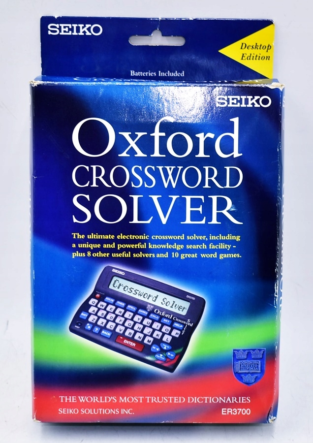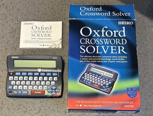 Buy Seiko ER3700 Oxford Crossword Solver at IJT Direct The Seiko ER-3700 Electronic Oxford Crossword Solver is the perfect companion to aid you in defeating any of those tricky crossword clues with big buttons and a large display making it easy to use. This handy compact crossword solver is packed full of thousands of words and synonyms and comes with 8 challenging word games to keep you entertained.