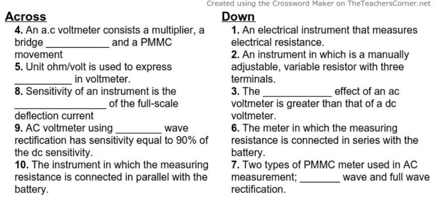 Solve the crossword puzzle given alongside with the help ... - EMBIBE Solve the crossword puzzle given alongside with the help of the clues given below: ... A device to measure time (7) ... Define electrical circuit. Electric current measure, for short – Puzzles Crossword Clue Electric current measure, for short – Puzzles Crossword Clue ; Electric current measure, for short, 3, amp ... instrument for measuring electric current Crossword Clue AMMETER. 7 ...