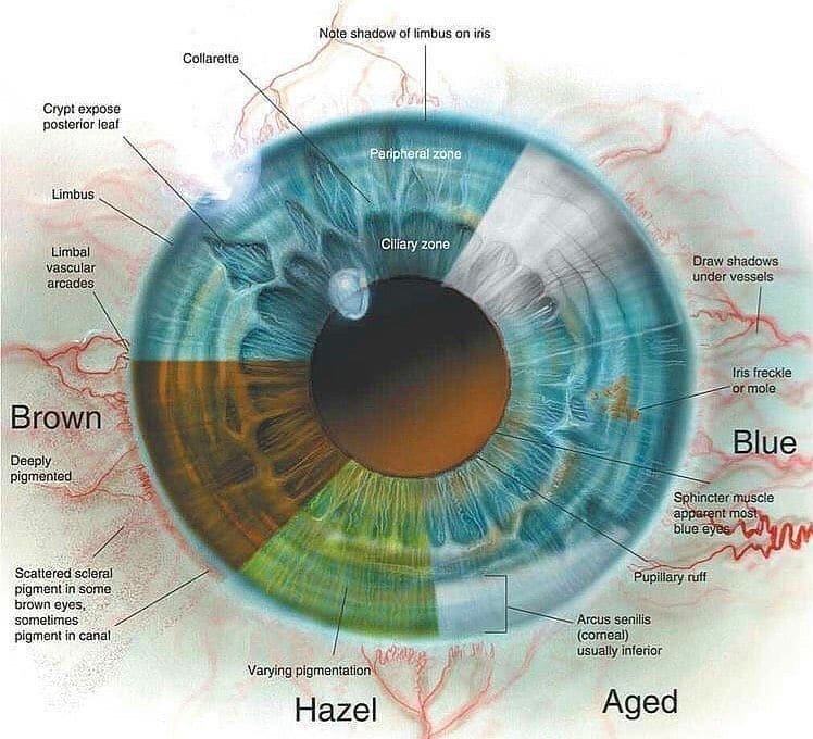 Iris (anatomy) - Wikipedia Eye color is defined by the iris. In optical terms, the pupil is the eye's aperture, while the iris is the diaphragm . Structure [ edit] The iris consists of two layers: the front pigmented fibrovascular layer known as a stroma and, beneath the stroma, pigmented epithelial cells. What Is Pigment Dispersion Syndrome? - American Academy of ... May 11, 2022 · Pigment gives your iris its color. Pigment dispersion syndrome (PDS) happens when the pigment rubs off the back of your iris. The pigment then floats around to other parts of the eye. The tiny bits of pigment can clog your eye's drainage angle. This can cause eye pressure problems. Nevus (Eye Freckle) - American Academy of Ophthalmology Nov 17, 2022 · A nevus is a common, colored growth on or in your eye. Sometimes called a freckle of the eye, it is similar to a mole on your skin. A nevus (plural: nevi) can be in the front of your eye, around the iris, or under the retina at the back of the eye. What Causes Nevi? A nevus is made up of cells called melanocytes.